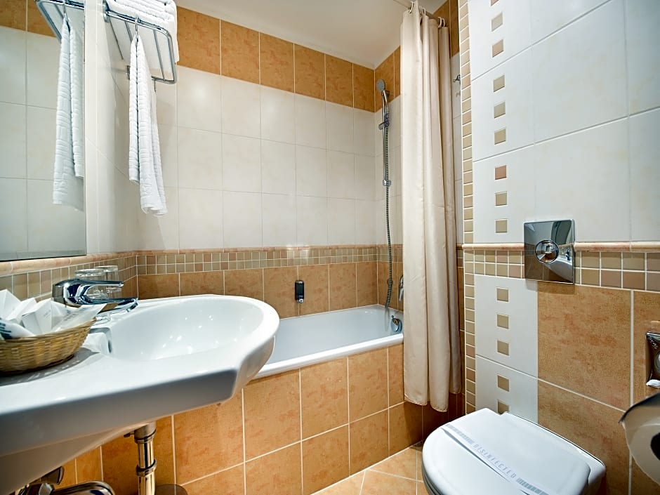This air-conditioned room is located on the 5th and 6th floors and offers panoramic views of Prague and the Wenceslas Square. It features a flat-screen satellite TV, tea and coffee making facilities, a mini-bar and a safe. The bathroom includes bathrobes and slippers.